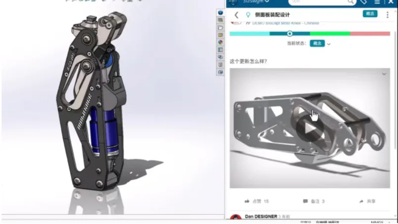现在社区功能被集成进了SOLIDWORKS,一键即可在SOLIDWORKS打开公司或团队社区,查看其他人的帖子和图片。