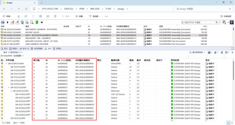 文件关联追踪功能也进行了升级,"包含"与"使用处"页签的列集支持修订版、ID、ID(十六进制)和存档服务器路径等系统变量。当部门经理在审批与发布流程中处理装配体时,能更清晰掌握组件关联关系,便于管理员在异常情况下恢复数据。