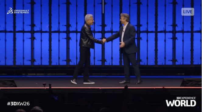 当时间来到2月3日(星期二),本次盛会也迎来了最高潮,全场焦点聚集在NVIDIA(英伟达)创始人兼首席执行官黄仁勋与达索系统首席执行官 Pascal Daloz同台亮相,这不仅是一次高规格的对话,更是一场具有里程碑意义的宣告:达索系统与NVIDIA正式开启深度战略合作。