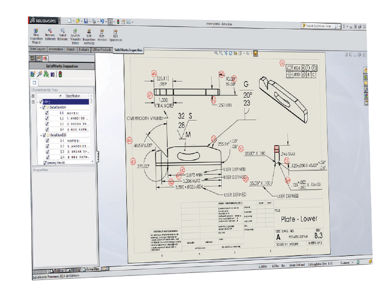 SOLIDWORKS Inspection插件自动化了工程图纸和3D文件的膨胀,包含产品与制造信息(PMI)。SOLIDWORKS Inspection 简化了行业标准检测报告的创建,最大限度地缩短了记录检测测量所需的时间。